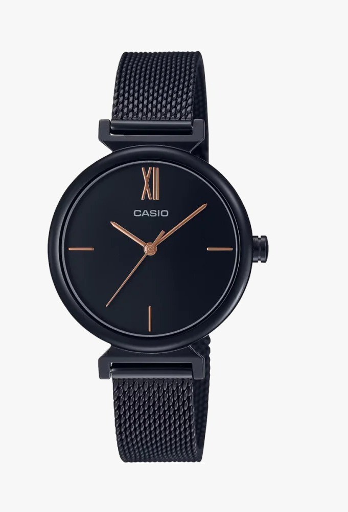 ساعة كاسيو نسائية باللون الأسود بتصميم عصري وبسيط يضيف لمسة من الرقي على يدك. احصل عليها الان